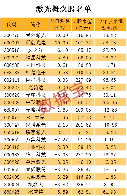 除了万集科技外,A股与激光业务有联系的上市公司有20家以上,如光韵达、大族激光、联赢激光、锐科激光、柏楚电子等。