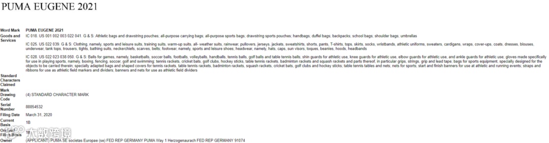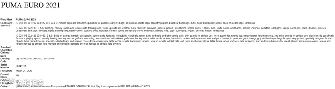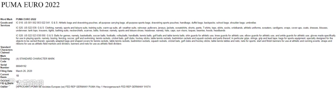 彪马企图申请注册的“Puma Euro 2021”“Puma Euro 2022”“Puma Eugene 2021”“Puma Eugene 2022”商标,也遭到了美国专利商标局的驳回。