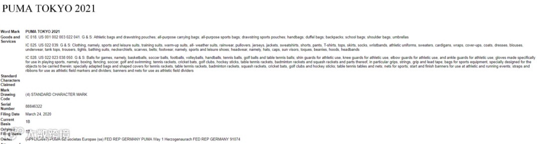 值得注意的是,彪马递交“Puma Tokyo 2021”商标申请的日期与IOC宣布东京奥运会延期的日期是同一天(即2020年3月24日)。