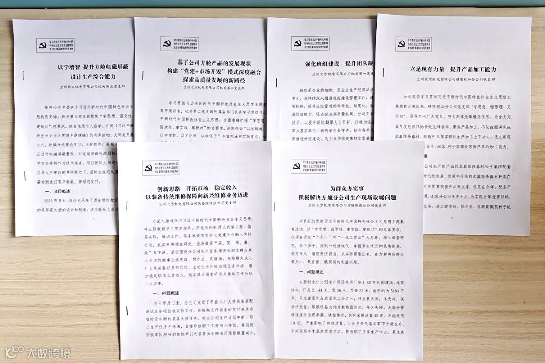 各党支部结合自身特点,努力将基层党建融入中心工作,用好党的创新理论和贯穿其中的立场观点方法,分别以《创新思路,开拓市场,稳定收入,以装备传统维修保障向新兴维修业务迈进》、《基于公司方舱产品的发展现状,构建“党建+市场开发”模式深度融合探索高质量发展的新路径》、《立足现有力量,提升精密产品加工能力》、《以学增智,提升方舱电磁屏蔽设计生产综合能力》、《为群众办实事积极解决方舱分公司生产现场取暖问题》、《强化班组建设,提升团队凝聚力》等为课题,开展深度调研,形成了一批整改整治特色案例,努力在以学铸魂、以学增智、以学正风、以学促干方面取得实实在在的成效。