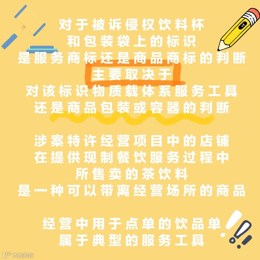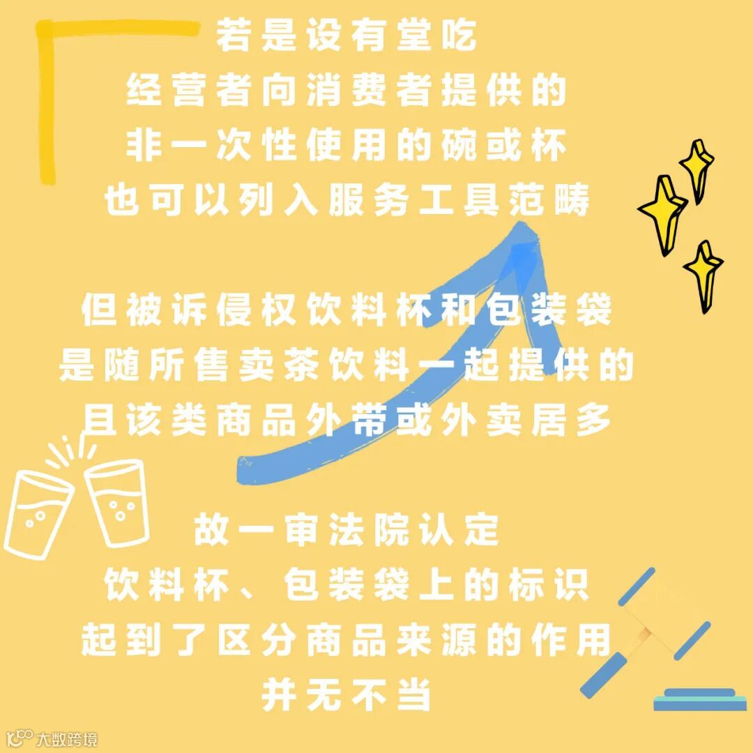燊博公司认为,饮料杯和包装袋属于服务工具,所使用的标识系对服务商标的使用,不涉及侵害涉案商品商标的专用权;一审判决按照法定赔偿的最高限额判赔,金额明显过高。