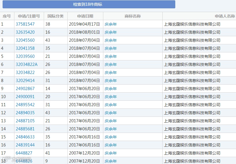 其中《庆余年》小说的版权方——玄霆娱乐,申请了18件