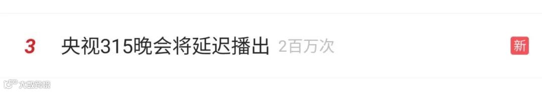 今天,央视315晚会延迟播出的消息冲上热搜了!