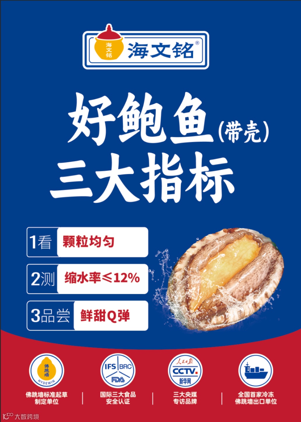 这些保证品质的数字,造就了海文铭鲍鱼品质好而且稳定,缩水率在12%以下,这就是海文铭好鲍鱼的标准。