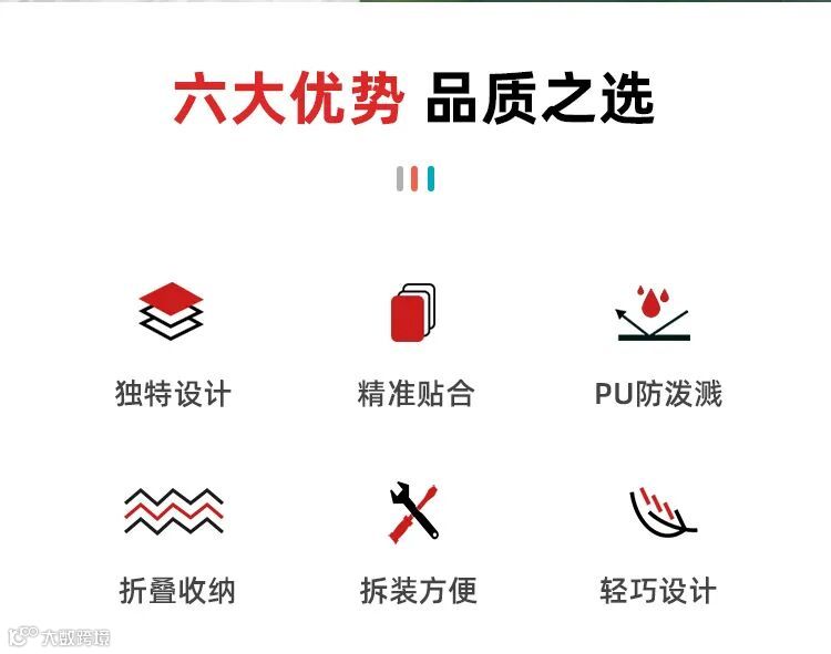 独特设计 精准贴合 PU防泼溅 折叠收纳 拆装方便 轻巧设计