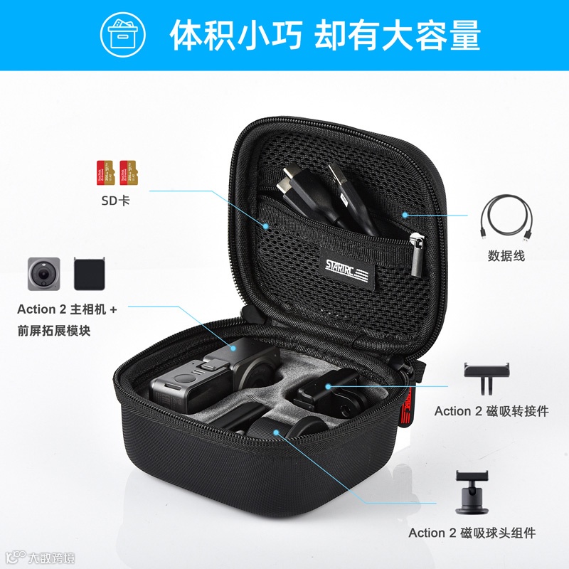 导语:外出拍摄的时候,为了拍出更好的效果,拍的尽兴,需要携带各种各样的配件。这个时候,你是否为他们的收纳和携带而烦恼呢?不用着急,接下来我们为你介绍一款专为 DJI Action 2运动相机量身定制的便携收纳包。