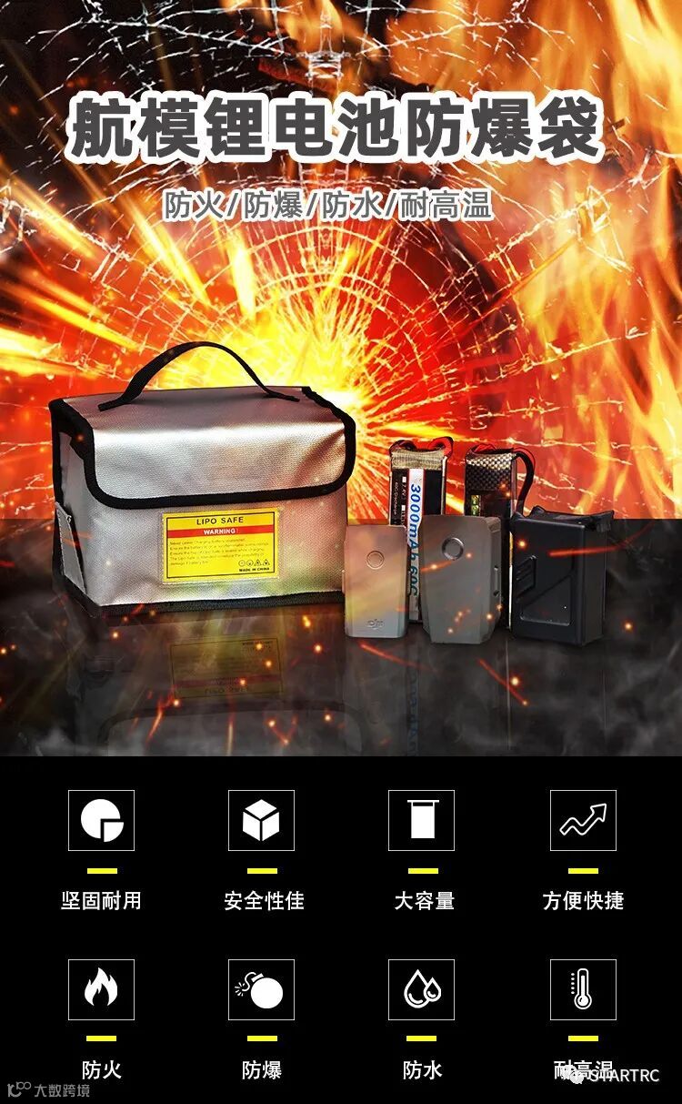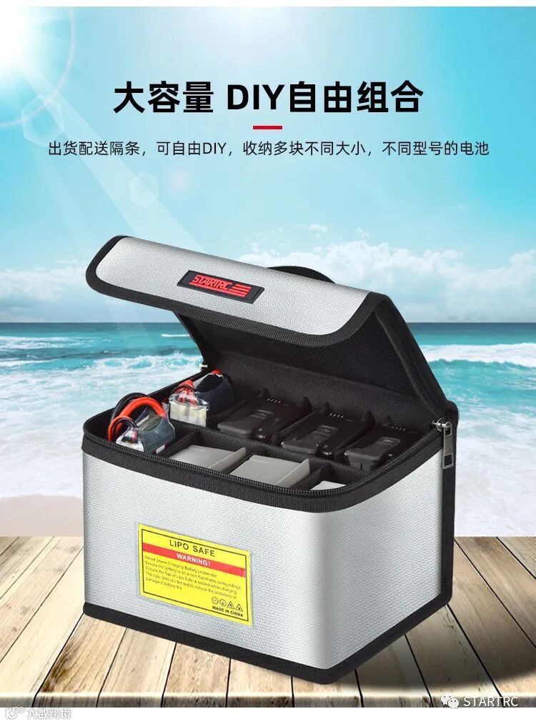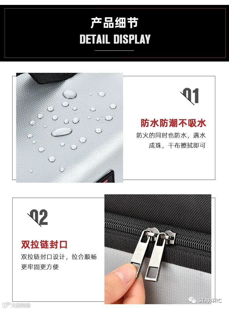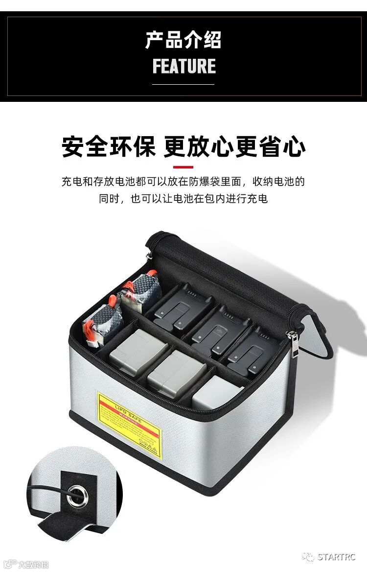 适用于:大疆无人机电池收纳、航模车模船模电池收纳、 车载/家用充电安全袋