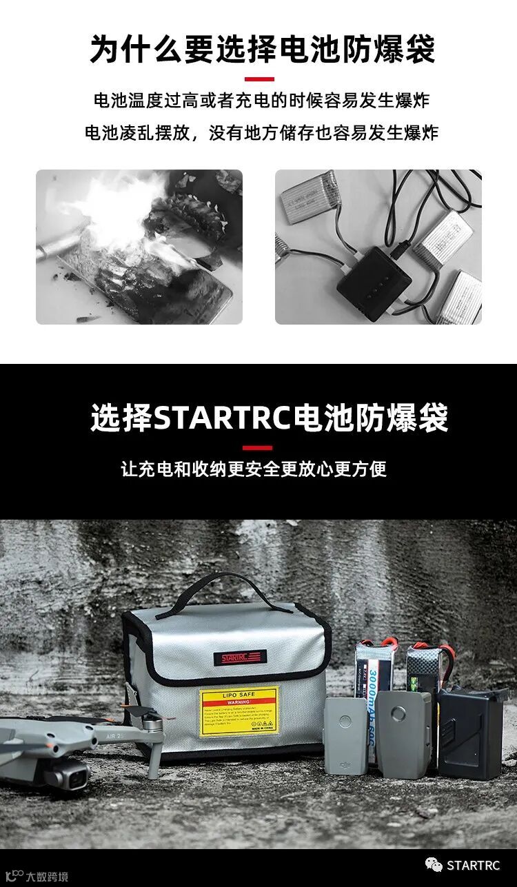 视频中是STARTRC的一款航模无人机电池防爆袋实测!可以发现电池防爆阻燃测试效果是非常不错的!