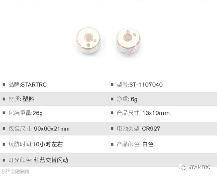 为黑夜的无人机指明方向,不怕盲飞。体积小巧,体积轻,不会给飞行器带来过重的负载。