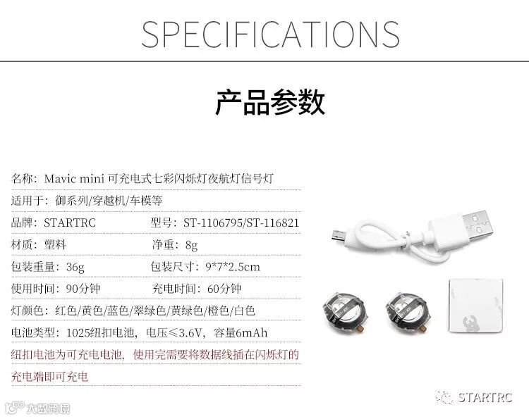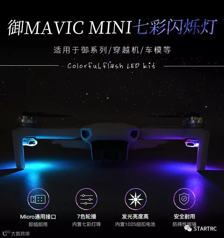 导读:STARTRC可充电式七彩闪烁灯夜航灯机臂机头信号灯适用于大疆DJI Mavic Mini 穿越机 车模