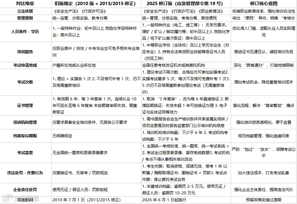2026 年 2 月 27 日,应急管理部召开专题发布会,正式解读 2025 版《特种作业人员安全技术培训考核管理规定》(应急管理部令第 19 号)。新规聚焦减轻企业 / 个人负担、优化取证流程,联合人社部、住建部、市场监管总局推出跨部门证书互认,多项便民举措将于 2026 年 6 月 1 日起实施!