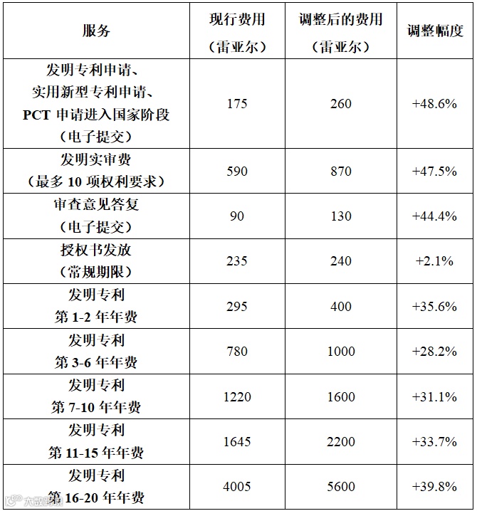 巴西发明专利申请相关费用大幅增加,平均涨幅在30%~50%之间,计划在巴西提交专利申请的申请人,建议尽快评估并控制申请成本。