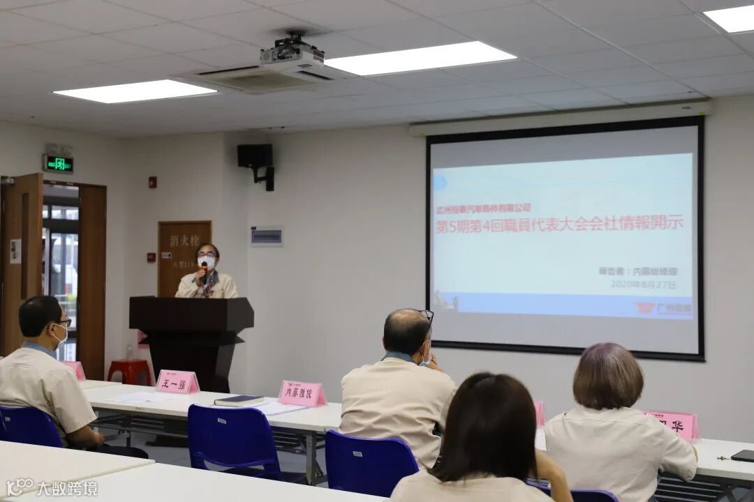 公司内藤总经理作《公司2019年度厂务公开报告》,总经理从2019年各项事业目标达成情况、员工福利、2020年展望等六个方面进行详细的报告。