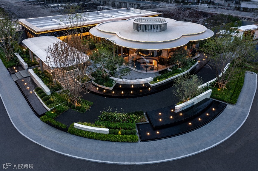 建筑采用简洁的几何体量,材料选择浅色、暖色系,打造视觉通透感和高级感,前场景观层层递进,形成多层次视觉体验。可漫步其中,体验人与自然交融的舒适。
