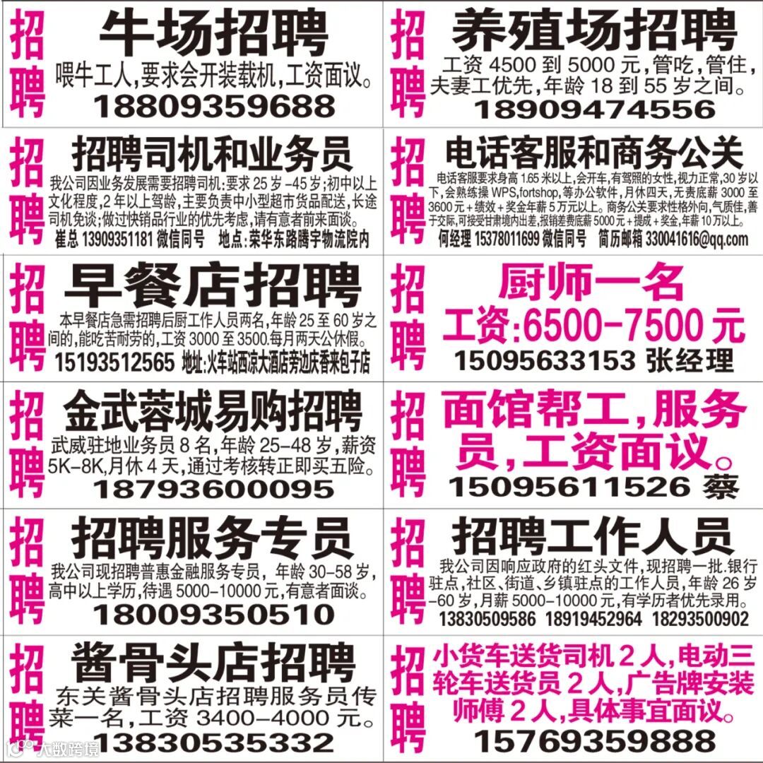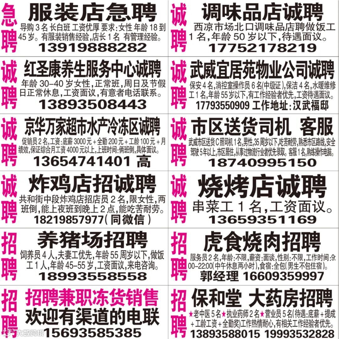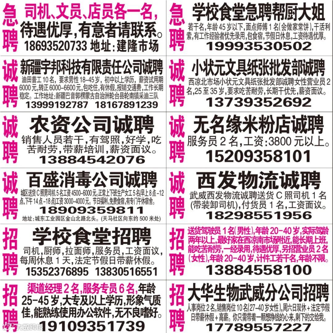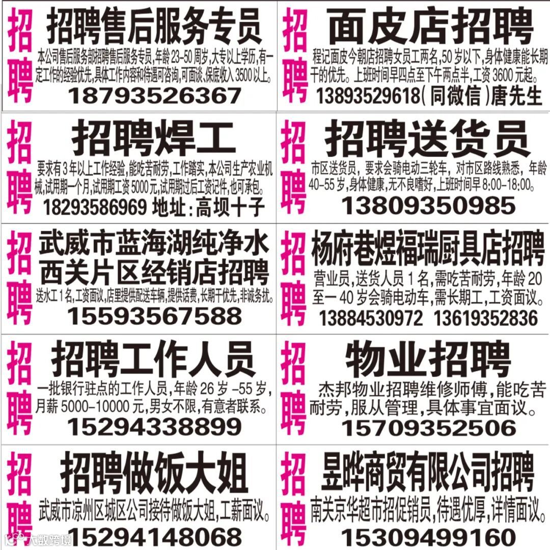 武威红柳广告和武威视觉传媒有限公司倾力打造武威本地网上生活平台,给您更好的本地资讯。招聘、求职、出租、转让、二手交易等便民信息查找、发布,商家优惠,吃喝玩乐购全都有。