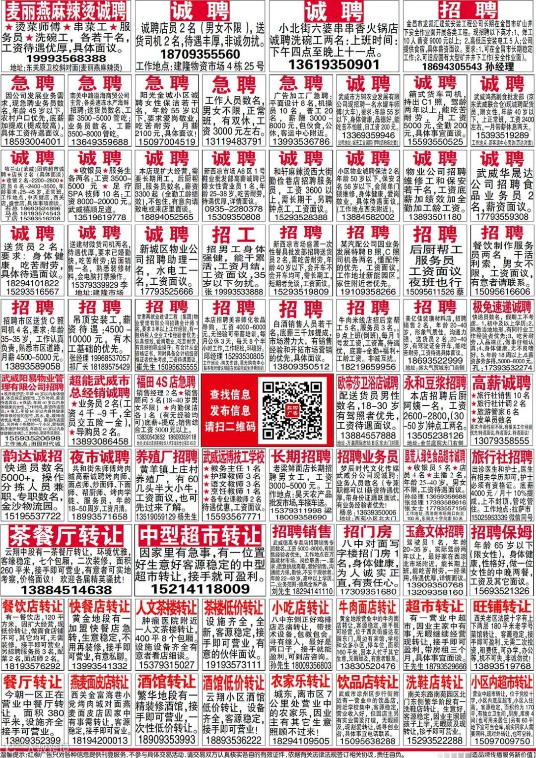 武威红柳广告和武威视觉传媒有限公司倾力打造武威本地网上生活平台,给您更好的本地资讯。招聘、求职、出租、转让、二手交易等便民信息查找、发布,商家优惠,吃喝玩乐购全都有。