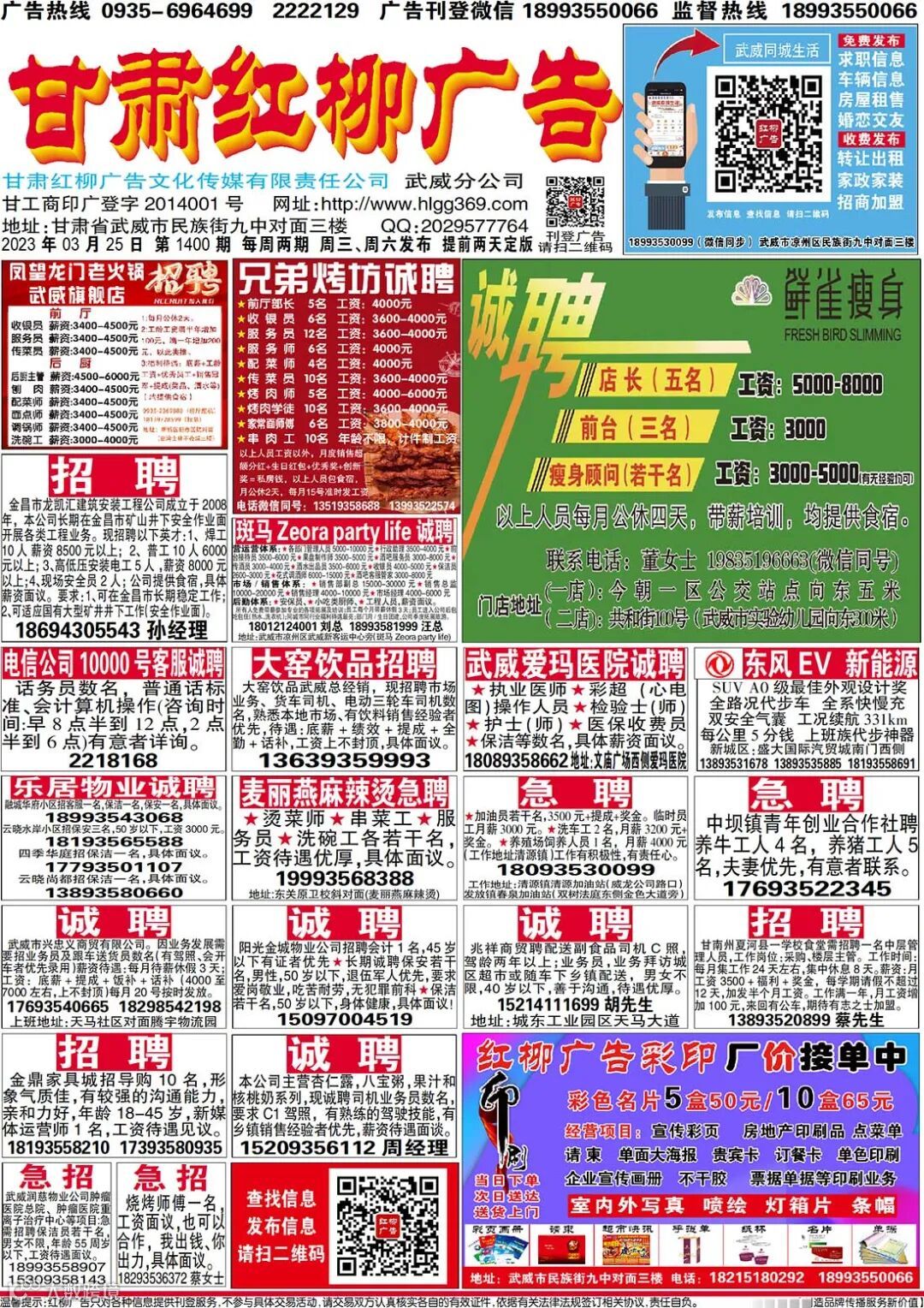 武威红柳广告和武威视觉传媒有限公司倾力打造武威本地网上生活平台,给您更好的本地资讯。招聘、求职、出租、转让、二手交易等便民信息查找、发布,商家优惠,吃喝玩乐购全都有。