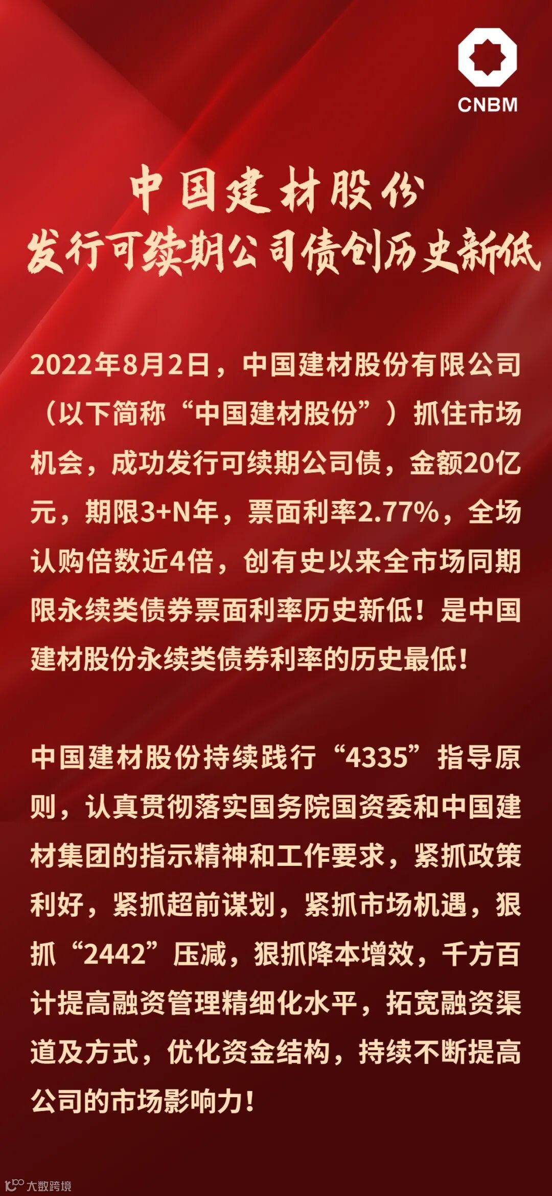 这里是中国建材股份有限公司(股票代码:HK.03323),我们的业务分布于基础建材、新材料、工程技术服务三大领域,我们致力于创造出材料领域全球领先的上市公司。欢迎关注,了解并见证我们的成长。