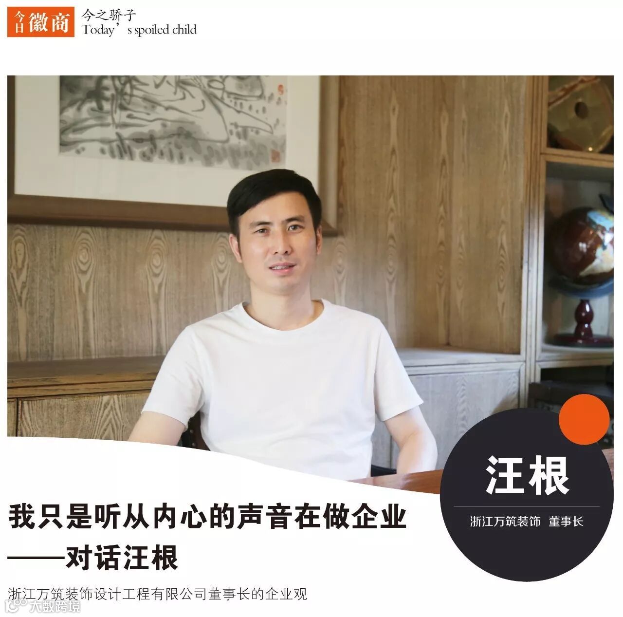 少壮派新锐徽商汪根,浙江万筑装饰设计工程有限公司创始人及现任董事长,在儒雅的外表下,有着一颗不羁的灵魂。