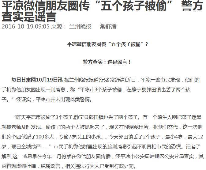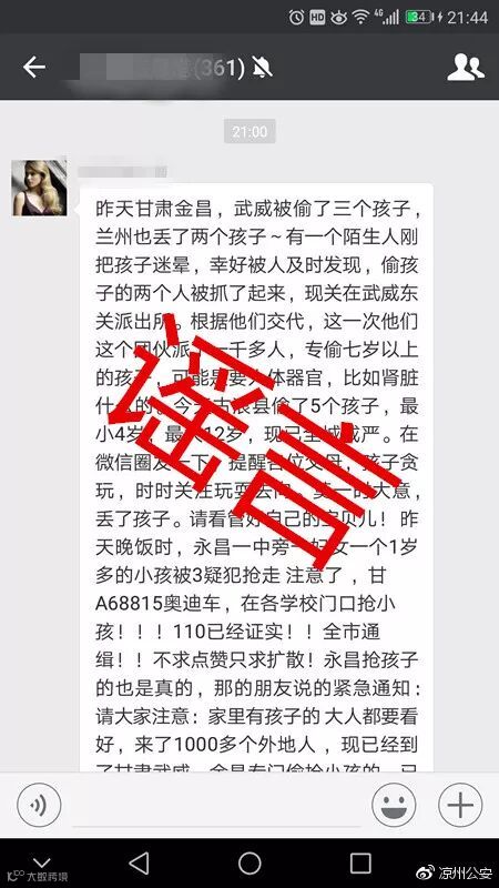 消息一出,不明真相的大人们,都会想“偷孩子的又来了”,小孩听说了,会想“大灰狼又来了”。就在今天@凉州公安,已经发布权威辟谣信息: