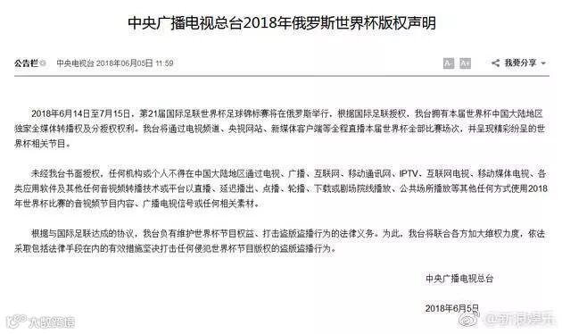 「2018世界杯版权声明」