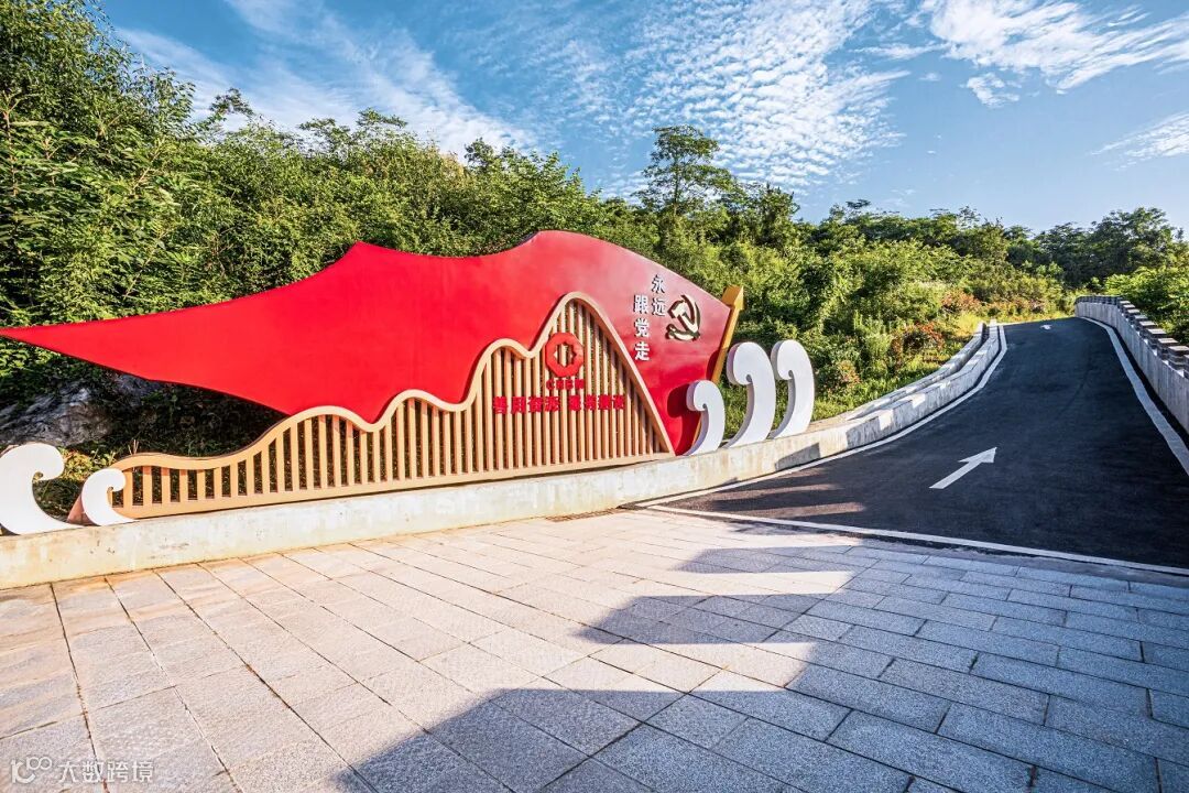 不仅修复生态,更要美化青山,这是大家的共识,在保有原生自然生态的同时,这里进行了公园式改造。“绿水本无忧,因风而皱面”,厂区里水塘的荡漾,摇曳着两侧的青山;望远亭与复古城墙遥相辉映,面面红旗迎风招展;芳草萋萋,林木葱茏的景观步道能眺望整个园区,红军抗日时曾作为据点的山洞被保留修葺成观景平台;“矿业史”、“中国梦”等文化景观打造了文化阵地。