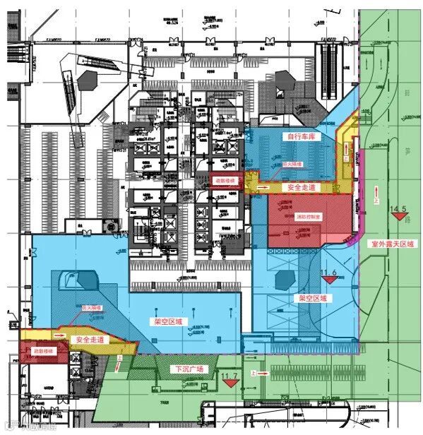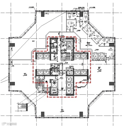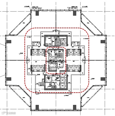 按照消防设计规则,建筑内部的核心筒应划定环形走道,直通消防疏散电梯。