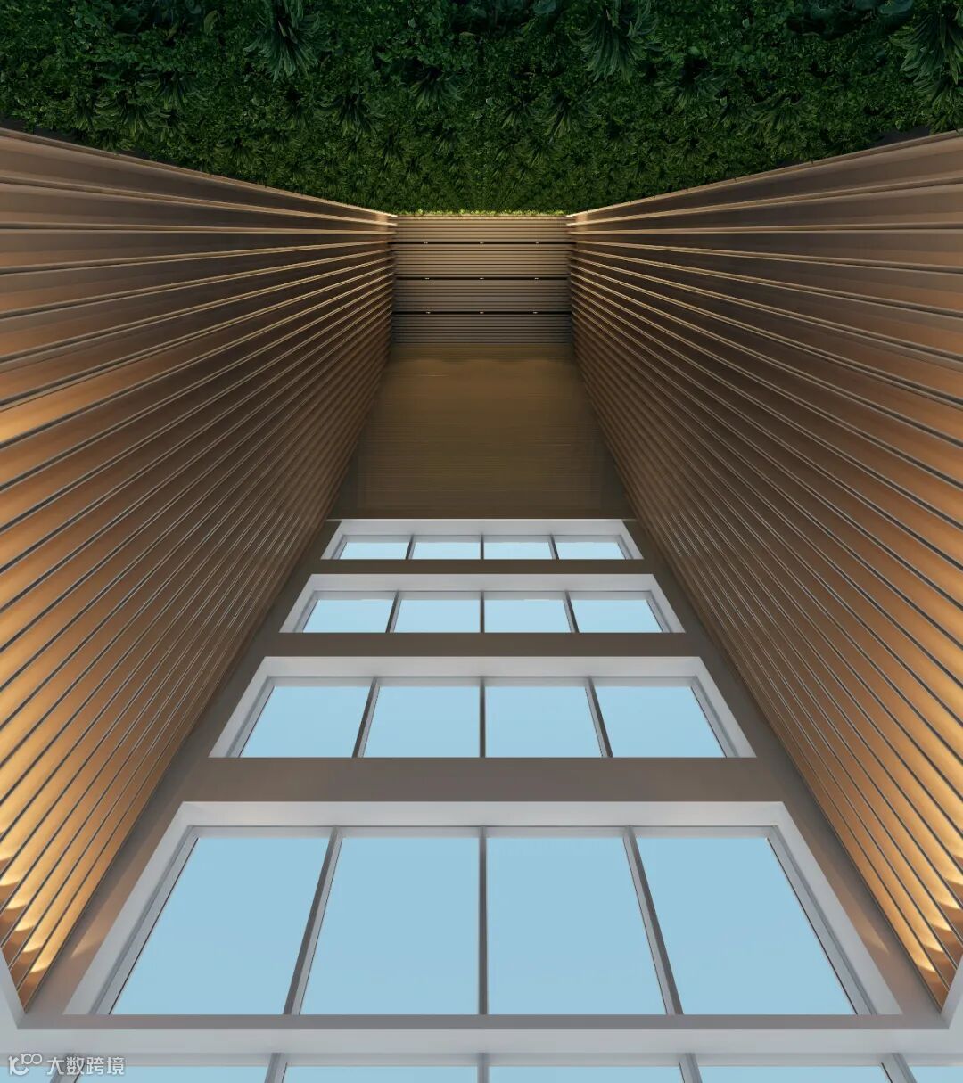 为保证首层广场空间的完整性,展现最佳景观效果,团队利用地下室转井确保首层广场范围内无风井百叶。首层架空休闲空间的百叶更是隐藏在雨棚后及建筑立面阴角处。