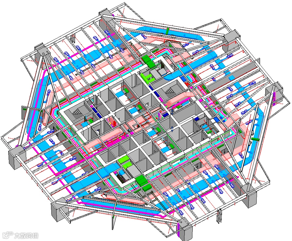 办公标准层机电管线综合排布图 ©筑博设计