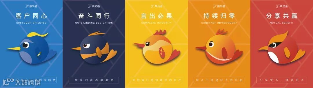 票易通自成立以来,第一次有了官方版的核心价值观“代言人”——五只可爱的吉祥鸟,并展翅亮相。我们要向“同心鸢(yuān)、犀利鸽、归灵膏、碧鹒(gēng)果、小鸿淑”多多学习,身体力行公司核心价值观, 成就自己,成就客户,成就公司!