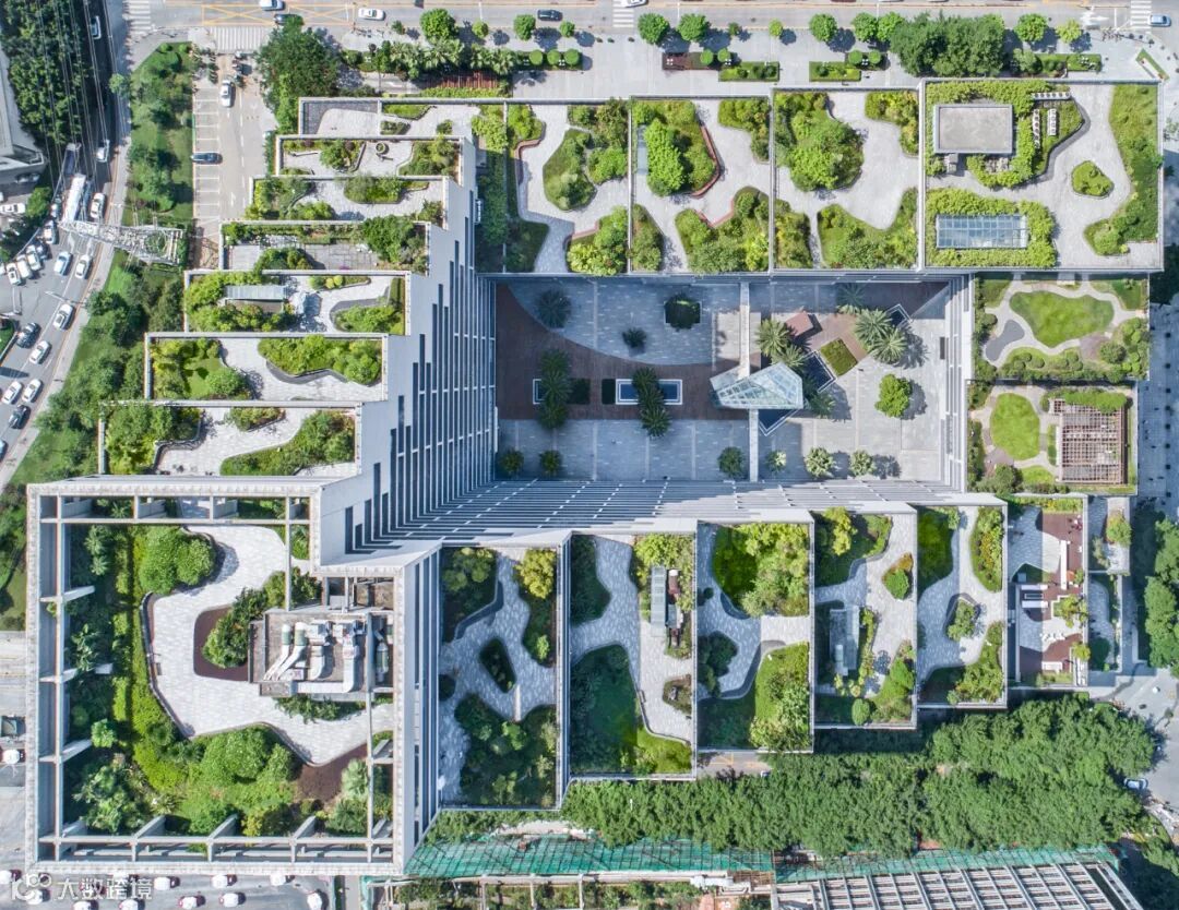 泰然大厦不仅是作为一座建筑,它同时也是一座台地花园,为周边的办公建筑提供了一片盎然绿意。