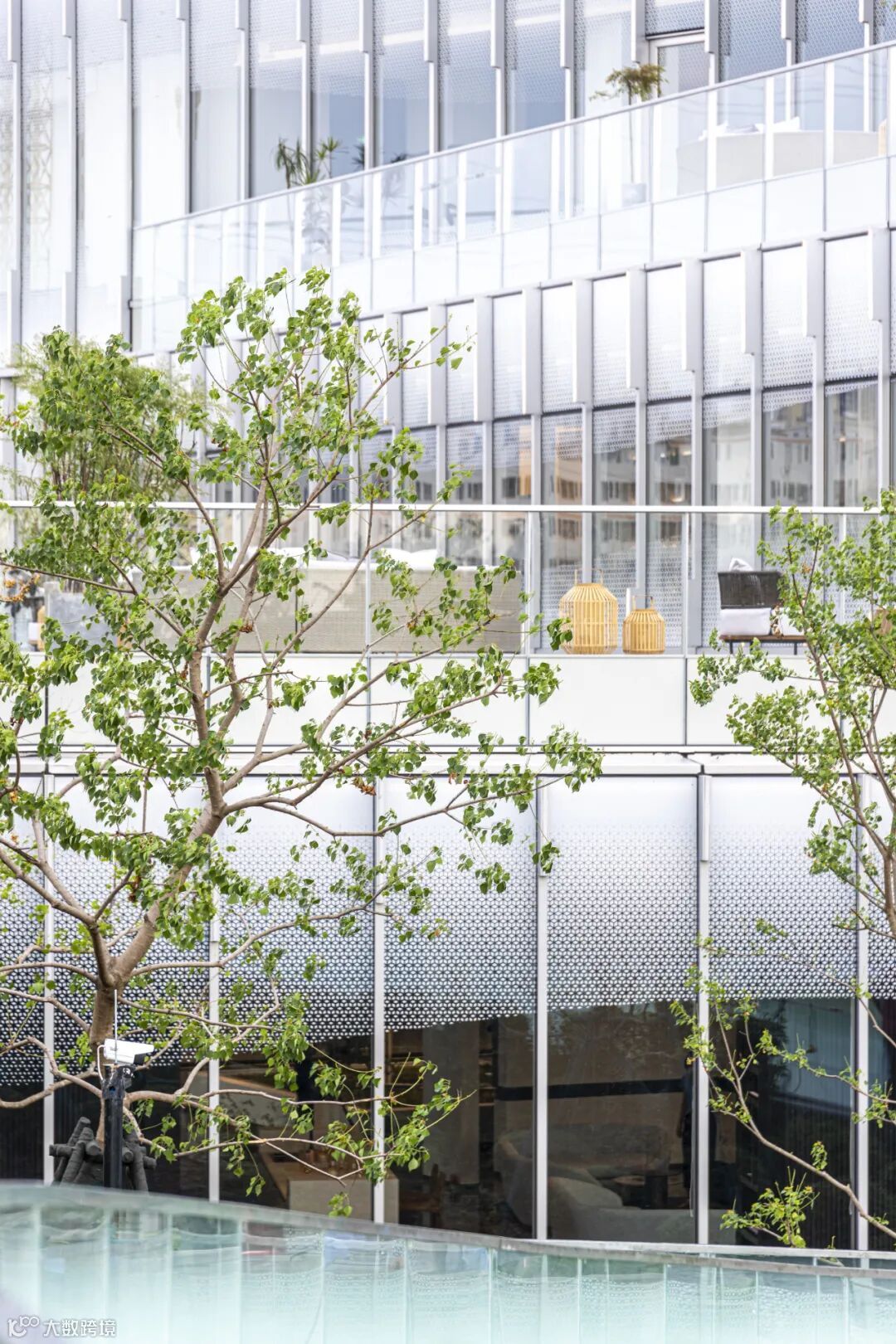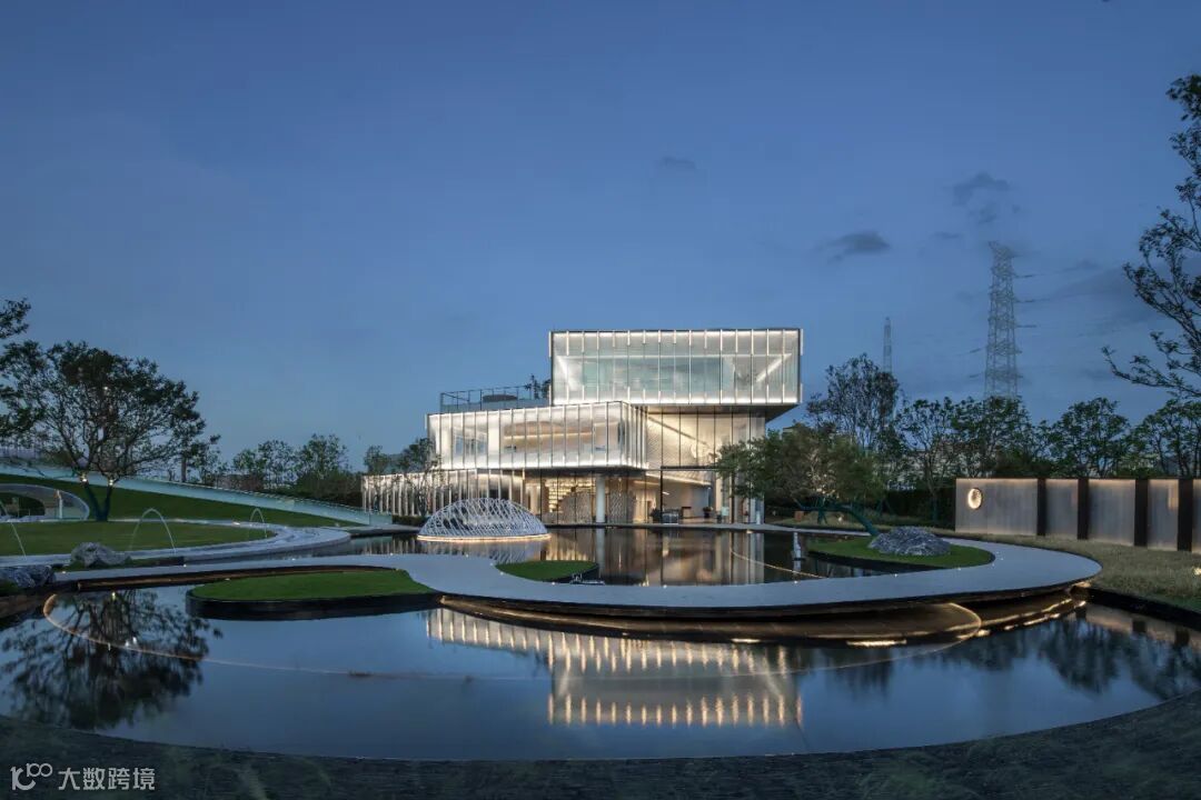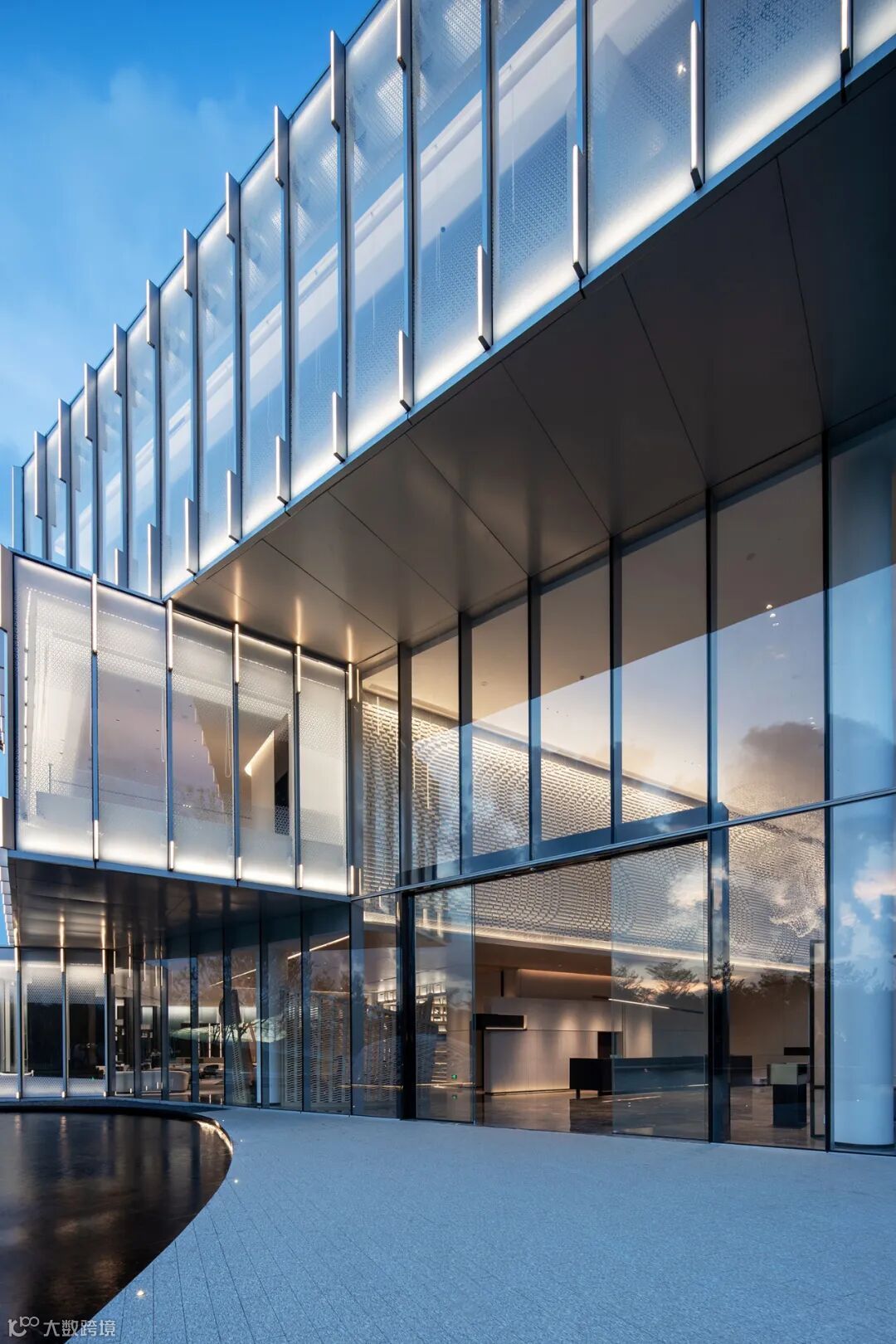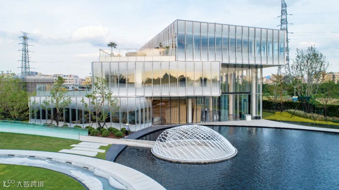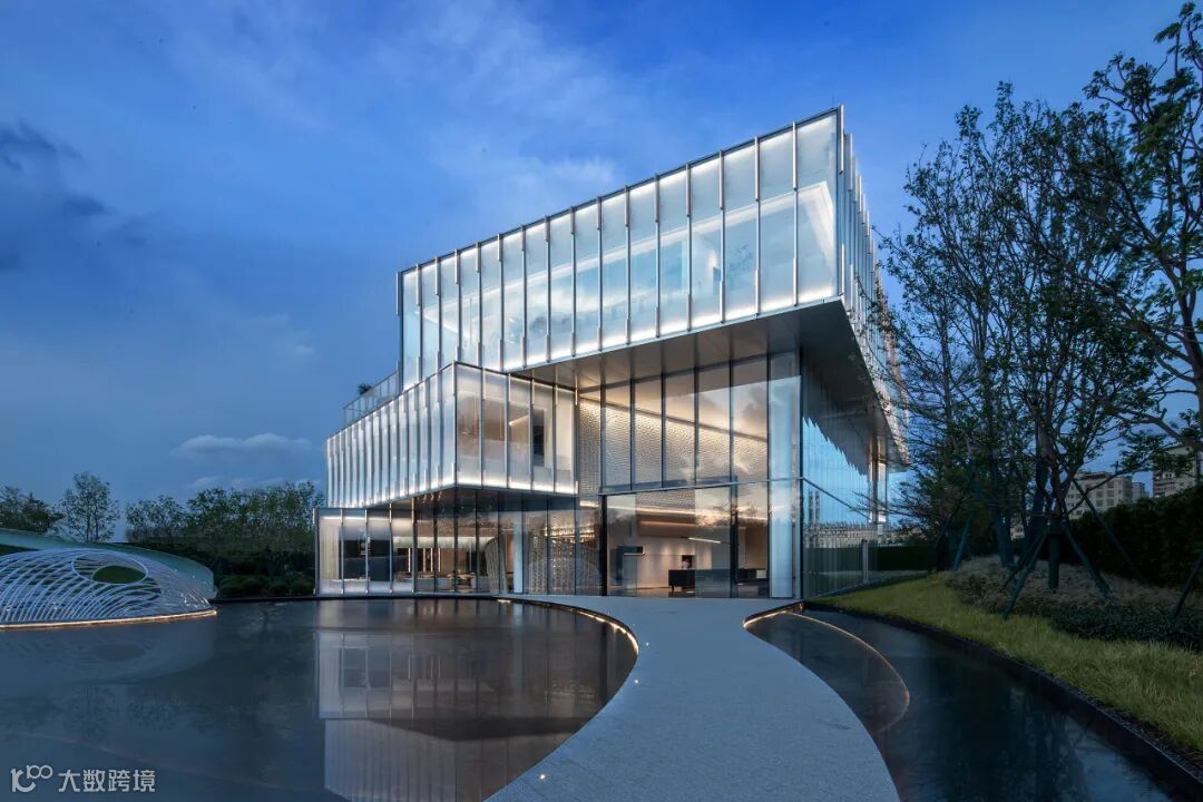 与此同时,抽象化的白云湖周边景观“以意补形”融入立面肌理,用参数化设计整合图案和金属构件的微妙变化。建筑的实体感被弱化了,建筑与景观开始相辅相成互为因借,建筑生长在自然环境中。