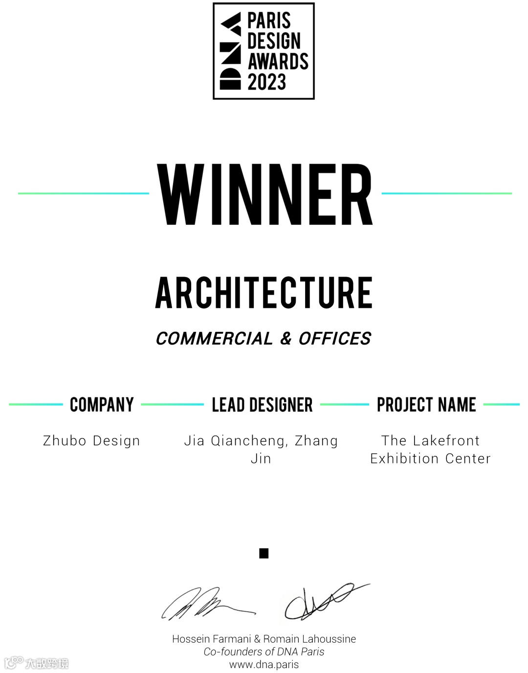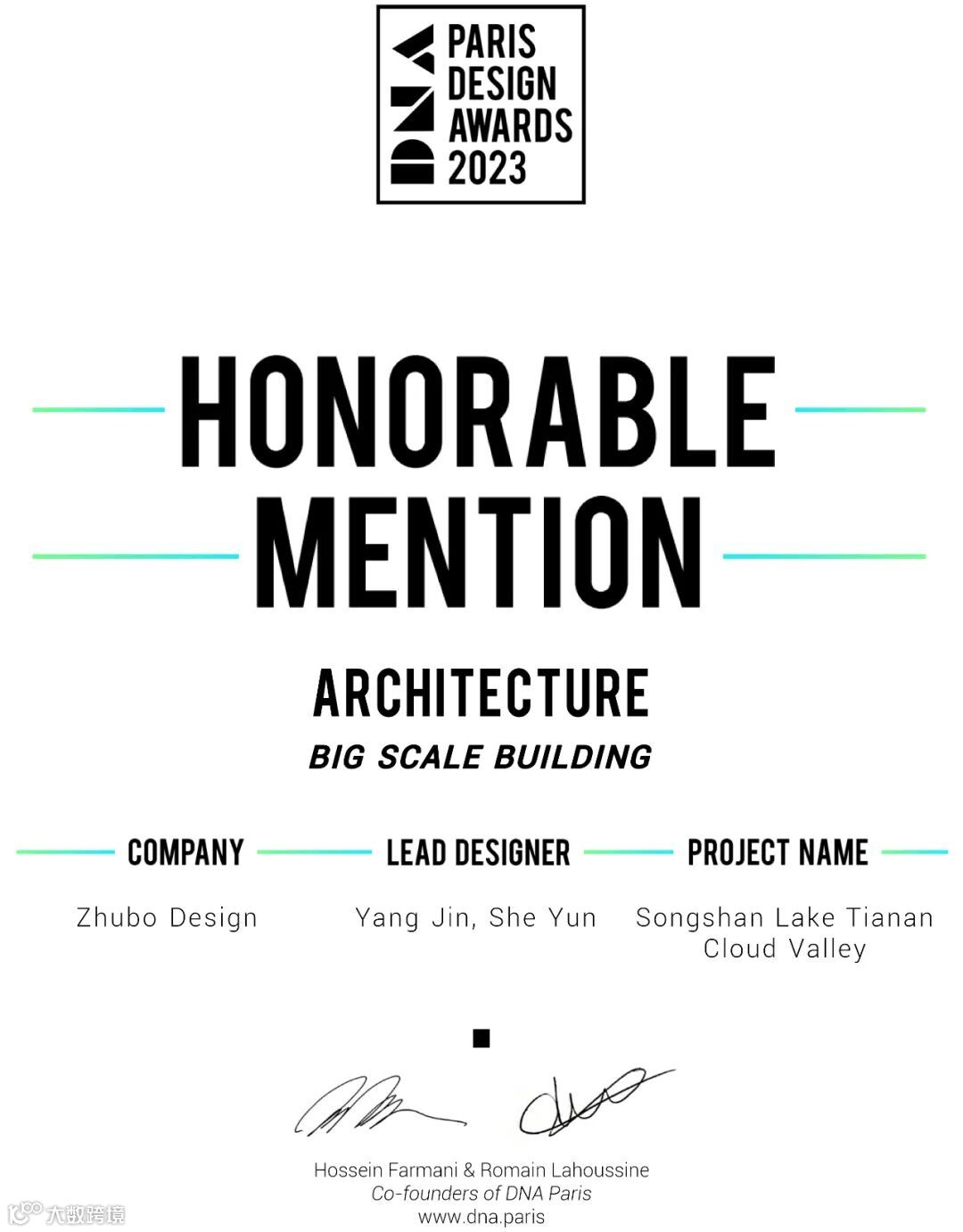 DNA巴黎设计大奖(DNA Paris Design Awards)是由国际权威设计大奖主办机构Farmani Group创办,是一项具备全球性和多元文化包容性的国际赛事,旨在发掘和表彰全球范围内新奇且极具创意的建筑、室内、景观、产品及平面设计作品,发现来自世界各地的新鲜创意设计。