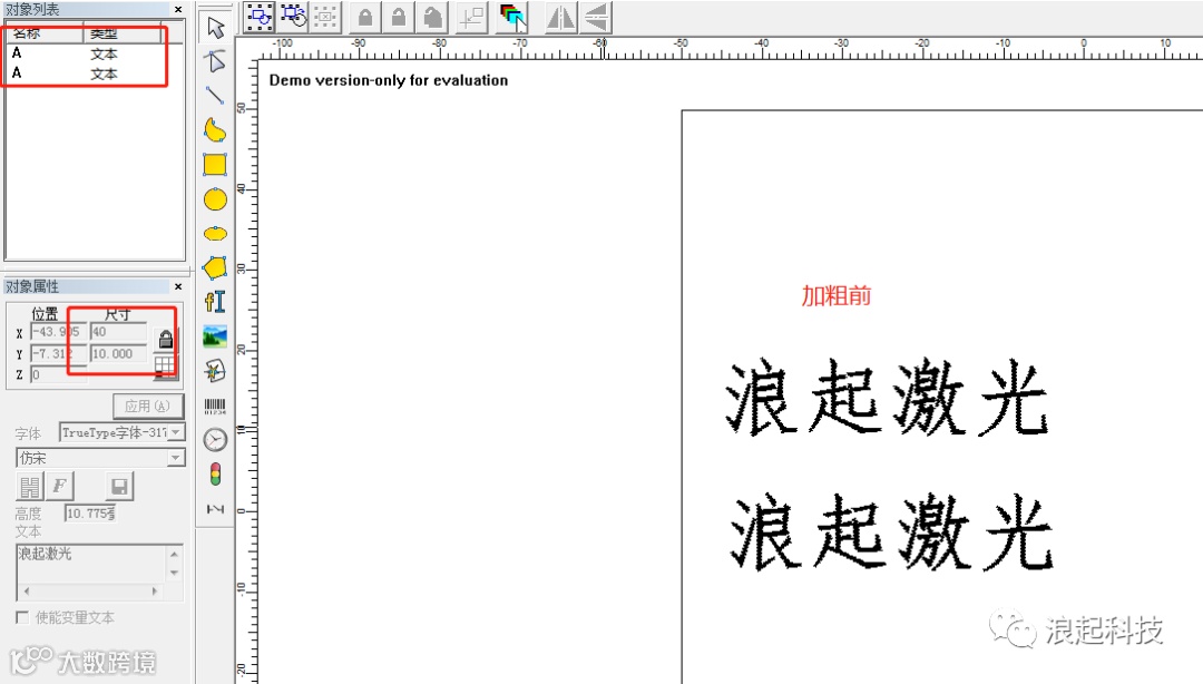 很多用户在使用激光打标机的时候,感觉字体比较细,换了多种字体还是不行,那么有什么办法呢?今天浪起激光给大家分享一个新方法