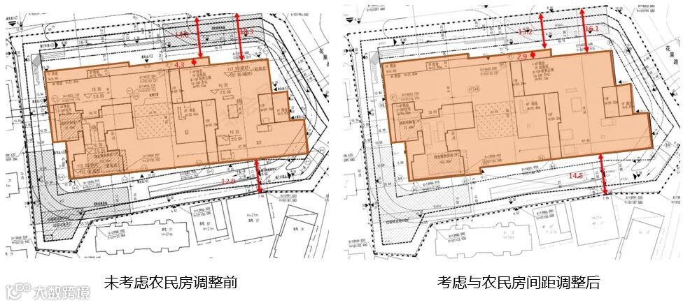 比如,项目经理在设计前期一定要把握好与周边基地特殊建筑的间距。在一个案例中,周边是一堆破旧农民房,大家想当然地认为这些属于临时建筑,设计方案中按照退线退了12米。凑巧该项目由于各种原因没有报方案直接做了施工图。全套图纸做完以后去跟规划局沟通,规划局认为这种农民建筑一定要按正常的住宅来考虑,考虑高差后需要退让14.5米的间距。