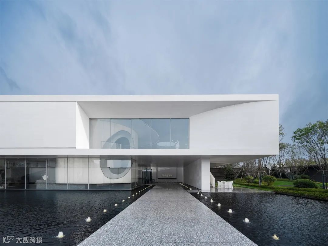 保利朗阅艺术中心伫立于长春伊通河畔。设计师以“现代、光影、自然、文化”为原则,采用方形体量、白色基调,附之水景映衬,幕墙结合,建筑通过玻璃幕墙与悬挑设计实现虚实、轻重的对比,产生了垂直方向的漂浮和水平方向舒展于大地的效果。建筑犹如一方洁净无瑕的美玉,漂浮于长春自然中心“净月区”。