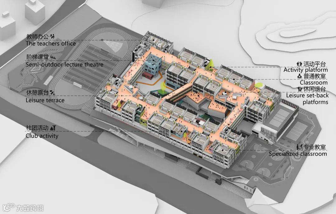 学校功能空间的竖向立体分区给校园的社区开放带来管理的便利,同时又为师生提供了全天候教育综合体的空间模型。