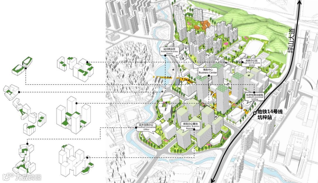 城市设计及后续整合不仅限于整合规划设计成果,而是从单一规划走向多方合作,对接法定图则修编、城市更新统筹、道路交通确定、坪山大道红线退让协调、地铁站点及线位规划调整等多方部门协调工作。