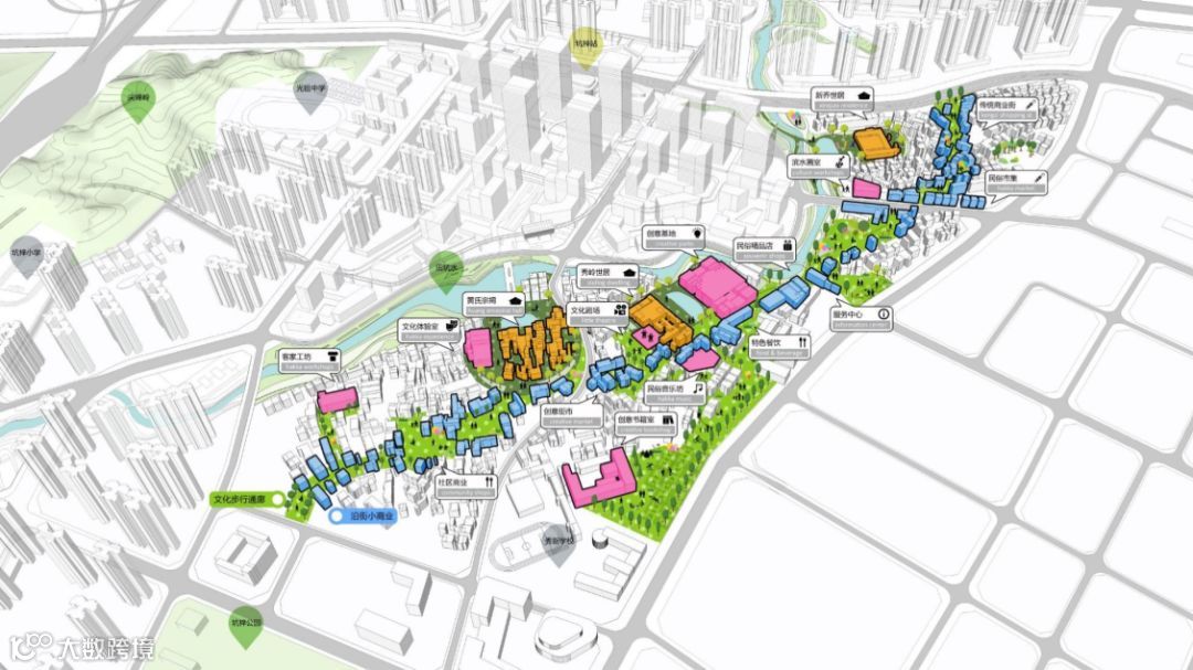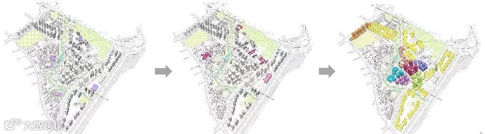 滨水空间梳理——治理老圩镇——保留世居——现状公共建筑——新建商业、文化、产业建筑等;