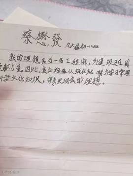 “以后要当一名文学家。为了实现这个理想,我决心好好学习,克服学习上的困难。”