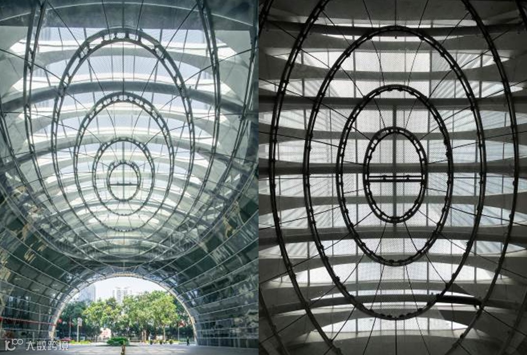 穹顶顶部设有天窗,当阳光射入的时候,经由玻璃的反射和折射产生普通直面玻璃建筑所不具备的水晶般的光影效果,营造出一种前所未有的入口前厅的体验。这个入口前厅由于完全开放,又具有很强的城市属性,为往返附近物业及公共交通站点的人提供了一个有趣的,能遮阳避雨的捷径通道。它从预设中私有的「共享大厅」转变成了真正「与城市共享的大厅」。而两家银行也回避了他们担忧的物业权属不清会造成的管理问题。