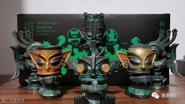 三星堆博物馆则将收藏的青铜大立人、青铜戴冠纵目面具、戴金面罩青铜人头像、铜鸟等文物设计成了60mm到80mm不等的模型,推出了“祈福神官”主题盲盒,创意感十足。更是以众筹、社群等社交化方式打造盲盒,通过