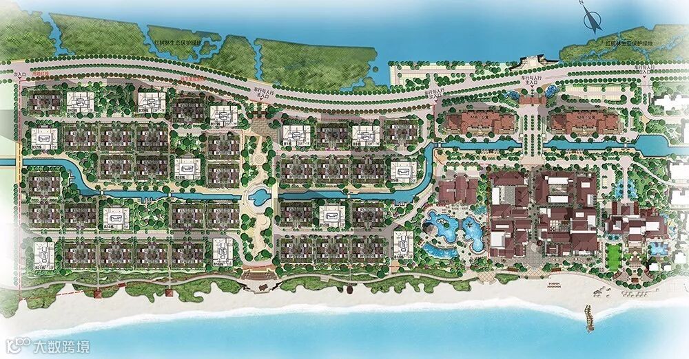 项目位于惠东双月湾半岛,三面环海,岛上自然人文景观丰富多彩,是一个绝佳的海滨度假胜地。因此,从项目周边竞品的调研与现状开始,业主与设计师就达成了一致的规划目标——打造一处全新的滨海度假目的地,让度假与生活融为一体。