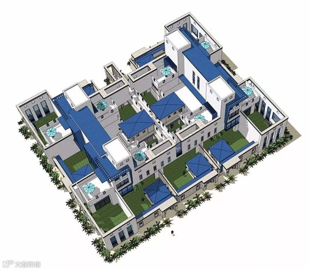 源于突尼斯蓝白小镇的立面设计