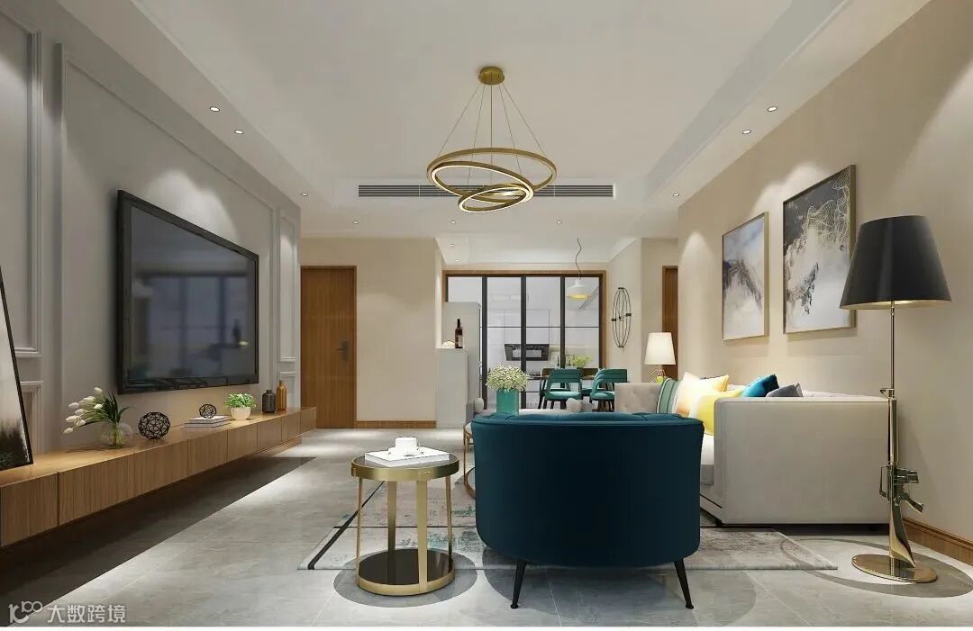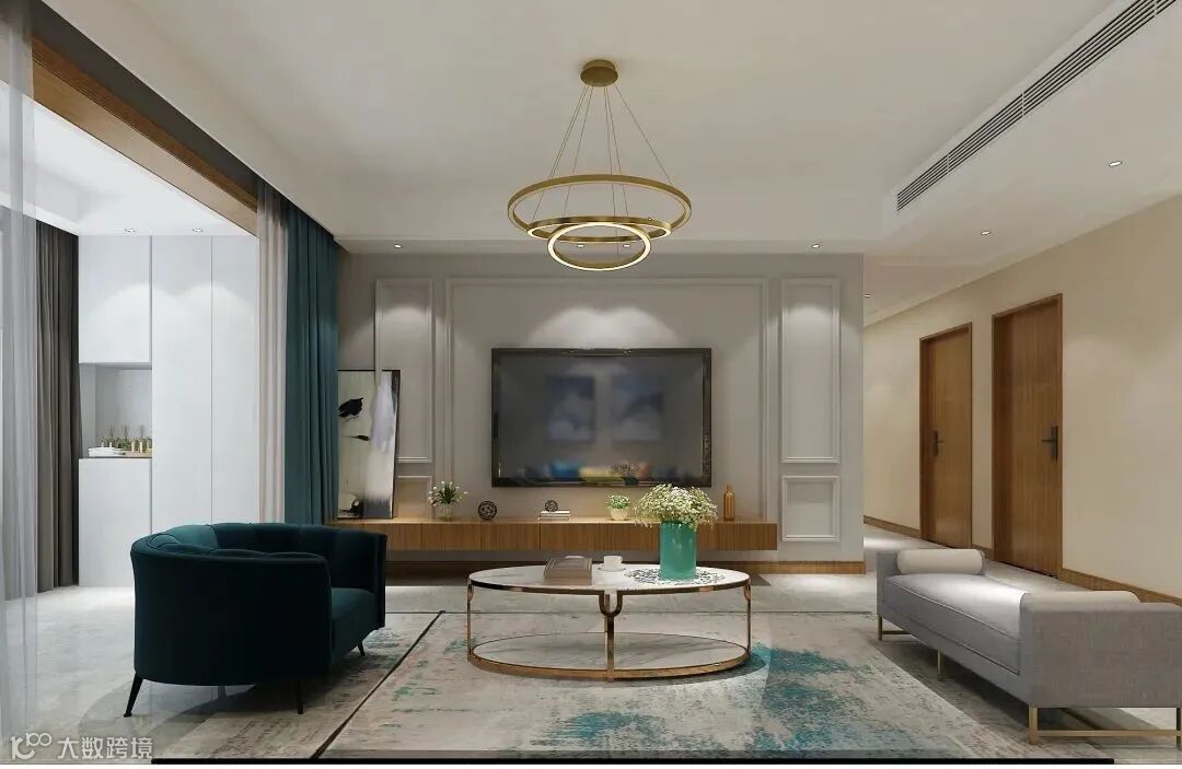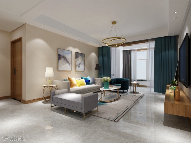 电视柜、木门、全房踢脚线保持同色系的原木色,符合现代简约风格,全屋柜子选择了定制柜。