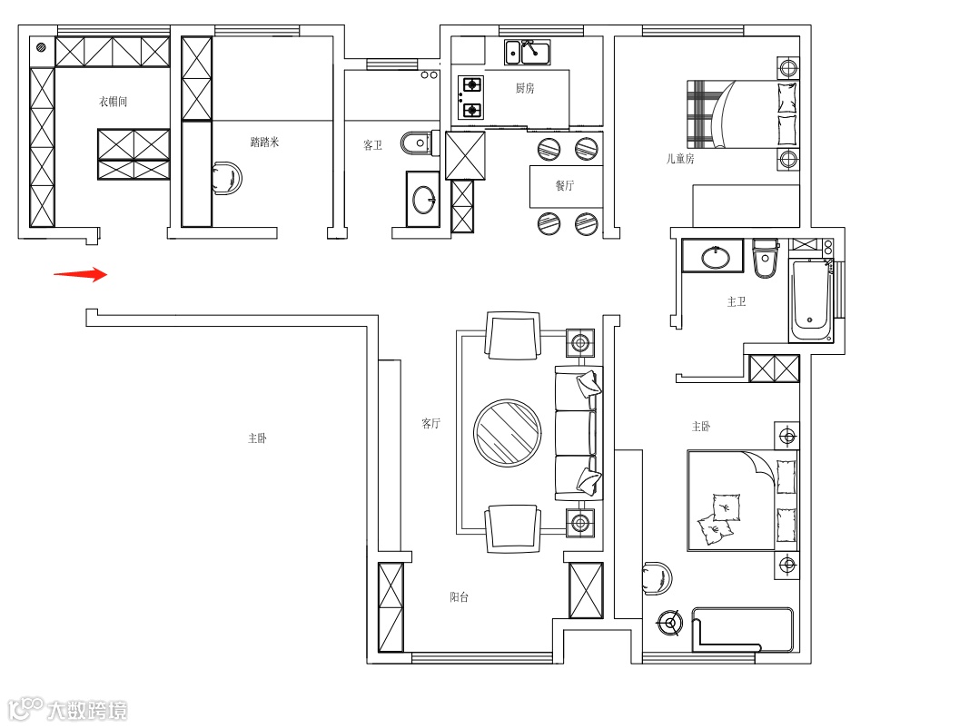 北卧室考虑布置儿童房,顶天立地的嵌入式衣柜,收纳方面提高10倍。