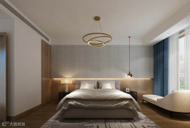 主卧床头背景墙考虑嵌入式灯带,明亮又比较温馨。
