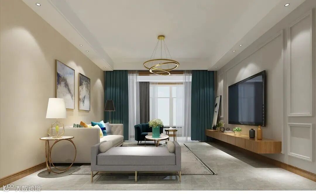墨绿色的单人沙发与这样的窗帘保持同色系,这样既营造了客厅的氛围,又比较温馨舒适。