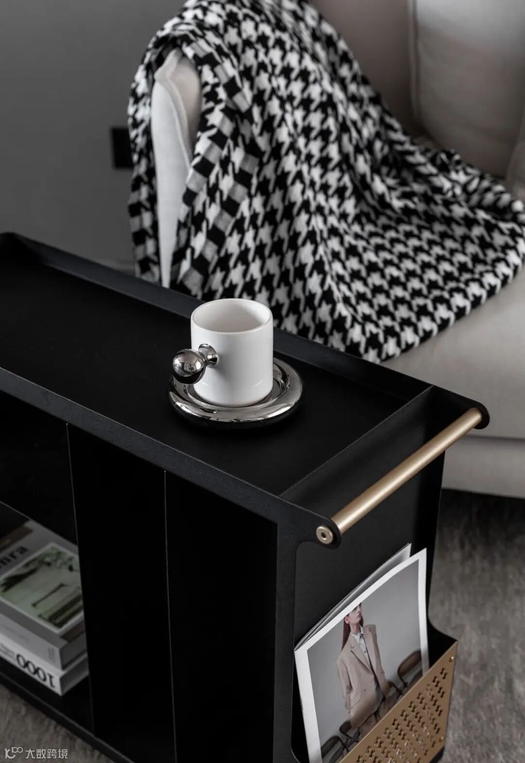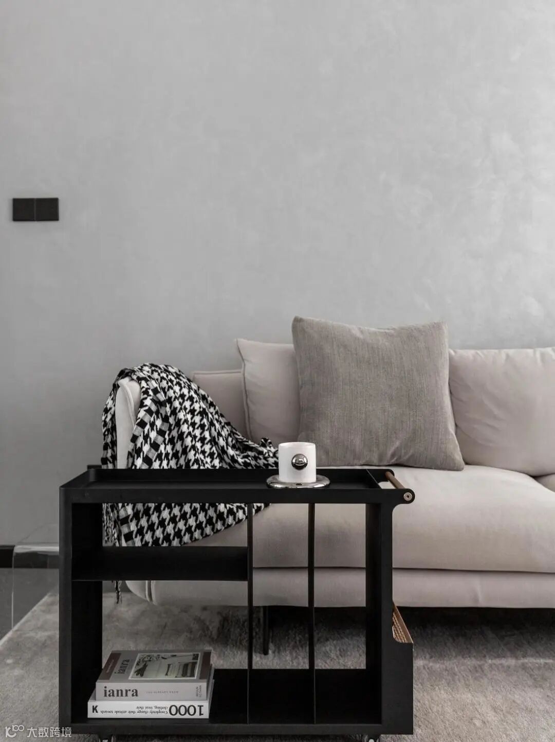 考虑到整体空间感,和屋主一起线上选购了黑色木质边几,代替了常规茶几使用。边几的可移动性,让屋主使用下来表示已经不想买茶几了。