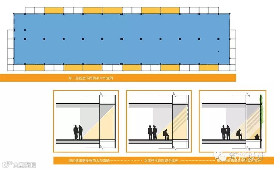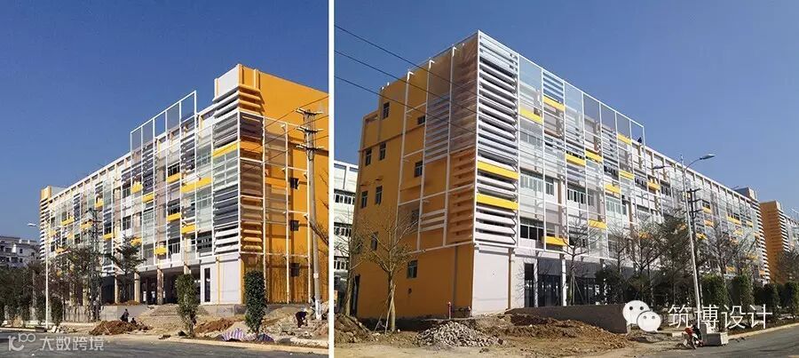而应对第一层级的立面改造,其概念源自基因片段,用建筑语言重新表述,实现立面的虚实变化,南向避免强烈阳光直晒,创造丰富的光影效果。结构灵活加建可在未来使用上扩展空间,绿色攀爬植物点缀立面,舒适生活美化环境。